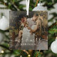 Welcome to the first holiday season as Mr. and Mrs.! Commemorate this special milestone with our elegant "Our 1st Christmas" custom photo keepsake Christmas ornament. Featuring stylish calligraphy and crisp white text, this beautifully designed ornament will add a touch of sophistication to your tree. So gather your favorite photo from your wedding day and create a memorable keepsake that will bring joy for years to come.