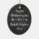 Our 1st Christmas together personalised tree ornament. Custom decorations with heart arrow and brush script handlettering typography. Black chalkboard background with elegant white calligraphy handwriting template. Pretty first Christmas party gift idea for engaged couple, newlyweds, bride and groom, boyfriend and girlfriend, husband and wife. Trendy decor personalizable with name or Holiday greeting. Make your own x-mas accessories for him and her. Merry Christmas! Blackboard with hand lettered text. Gold glitter string included. Stylish handwritten font with love mark.