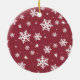 Stylish photo ornament design for the holidays features your favorite image of the newlywed couple with "Our 1st Married Christmas" text in modern script lettering. Personalize the custom text with your names and the year. A simple pattern of white winter snowflakes dresses up the back of the ornament. The deep berry red background color can be customized to coordinate with your holiday decor. Photo tip: crop photo to square format before uploading it to the design template.