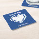 Protect your tables and create a coordinated look for your classic video game-themed wedding or event with these paper coasters, featuring a rich blue background decorated with a white 8-bit heart and some sample text that you can customise for your needs.
