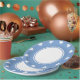 Add a fun, coordinated touch to your rehearsal dinner, bridal shower, or even a more casual geeky wedding with these paper plates, featuring a periwinkle blue rim decorated with white 8-bit hearts and a white banded centre section, creating a great look for any classic video game-themed event.