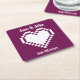Protect your tables and create a coordinated look for your classic video game-themed wedding or event with these paper coasters, featuring a deep wine background decorated with a white 8-bit heart and some sample text that you can customise for your needs.