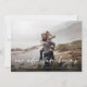 Announce your wedding date with these beautiful, minimalist full bleed save the date cards featuring a horizontal or landscape orientated photo with "our adventure begins" overlaid in white handwritten script lettering. Personalise with your announcement, names, and additional details.