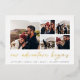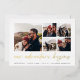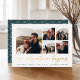 A modern and exciting save the date card for the adventure-minded couple, this clean and simple design features five square photos in a grid collage layout, with "our adventure begins" beneath in gold foil hand lettered script. Personalise with your announcement, names, and additional details along the bottom, and add more (like your wedding website) to the back.