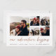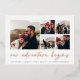 A modern and exciting save the date card for the adventure-minded couple, this clean and simple design features five square photos in a grid collage layout, with "our adventure begins" beneath in rose gold foil hand lettered script. Personalise with your announcement, names, and additional details along the bottom, and add more (like your wedding website) to the back.
