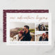 A modern and exciting save the date card for the adventure-minded couple, this clean and simple design features three horizontal or landscape orientated photos in a grid collage layout, with "our adventure begins" above in rose gold foil hand lettered script. Personalise with your announcement, names, and additional details along the bottom, and add more (like your wedding website) to the back.
