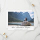 Destination wedding photo save the date cards featuring an engagement photo on a plain white background. Personalised destination wedding save the date cards. Customisable mountain wedding save the date cards. Script wedding save the date cards. Our adventure begins save the date.