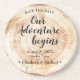 Something different from your typical Save the Date announcements. This printed wood slab disc on coasters will surprise and delight your guests. Perfect for rustic themed weddings and it highlight's a couple's love for nature. Featuring the words "Our Adventure Begins". Personalize each field with your date, names and location.