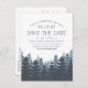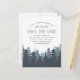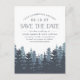 For the outdoorsy and adventurous couple, our rustic and wintry pine tree wedding save the date postcards have a chilly woodland vibe, with a lush forest of pine trees in rich shades of smoky blue grey, melting into a foreground of dark navy blue softened with charcoal. Perfect for winter weddings in forest, woodland, mountain or outdoor settings, these save the dates feature your wedding details in smoky navy typography and "our adventure begins" at the top. Custom text templates provide space for your names, wedding date, location and wedding website.