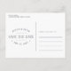 Postcards reverse to show a truncated version of your save the date details, with your return address and space for recipient addressing.