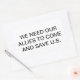OUR ALLIES MUST SAVE U.S.. Hankamer Artjunkhaus Rectangular Sticker