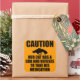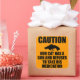A silhouette of a handgun and the phrase "Caution, our cat has a gun and refuses to take his medication"