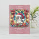 A cute kitten looking out a window decorated for Christmas, with a message from mummy & daddy.
