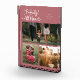 Modern and whimsical family memory photo block featuring 3 photos with a text that says "our family is all heart" with tiny hearts. Pink.