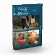 Modern and whimsical family memory photo block featuring 3 photos with a text that says "our family is all heart" with tiny hearts. Teal.