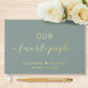 Elegant sage green wedding guest book featuring your choice of real gold, silver or rose gold foil, "Our Favourite People" in simple typography and a chic script with swashes, your names romantically joined together by a heart and your wedding date. Customise your title on the spine.