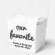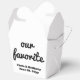 Our Favourite wedding favour box, custom reception treat for guest, personalised name date dessert buffet, thank you gift cookie candy, doughnut brownie cupcake to go, love is sweet bridal shower, goodie from bride and groom, personalised party his her container, take home goody package chocolate, celebration hotel arrival macaron snack