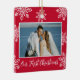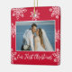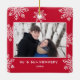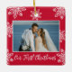 Our First Christmas 2 Photo White Snowflakes Red Ceramic Ornament