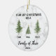 Celebrate Christmas with this beautiful ornament, "Our 1st Christmas as a Family of Three," featuring whimsical trees and a marble effect background. First, personalise baby's name and year. Next, upload a picture to the back. Now, your lovely keepsake design is complete and uniquely yours. This holiday ornament will add an extra special touch to your tree.