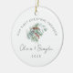 Celebrate your first Christmas as Mr. and Mrs. with our exquisite "Our First Christmas Engaged Minimalist Eucalyptus Ceramic Ornament. This ornament beautifully blends simplicity with sentimentality, featuring a pristine white ceramic background adorned with charming hand-drawn Christmas tree illustrations. It adds a touch of elegance and nostalgia to your holiday decor.