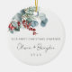 Celebrate your first Christmas as Mr. and Mrs. with our exquisite "Our First Christmas Engaged Minimalist Eucalyptus Ceramic Ornament. This ornament beautifully blends simplicity with sentimentality, featuring a pristine white ceramic background adorned with charming hand-drawn Christmas tree illustrations. It adds a touch of elegance and nostalgia to your holiday decor.