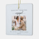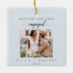 Celebrate your first Christmas as an engaged couple with this winter inspired photo ceramic ornament. Soft seasonal accents frame your favorite picture with a cozy, romantic aesthetic perfect for holiday decorating. Clean modern typography and a polished finish create a timeless keepsake designed for gifting or displaying on your holiday tree with warm winter charm.