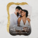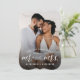 This modern minimalist holiday/christmas wedding announcement card features the words 'Our First Christmas as Mr. and Mrs.' in trendy calligraphy script and simple sans serif mix typography overlaying a full bleed photo.
