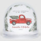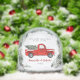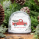 Commemorate your first holiday season as newlyweds with this charming custom snow globe. The front features a classic red pickup truck carrying a Christmas tree, framed by pine branches and the phrase “Our First Christmas as Mr. & Mrs.” Personalise with your names and year, and showcase a wedding photo on the back to make it uniquely yours.