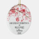 Our First Christmas as MR & MRS, cherry blossom tree, pink flowers, oriental, Asian, rustic Ceramic Ornament. Watercolor Christmas ornament.