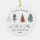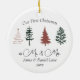 This "Our first Christmas as Mr. and Mrs." ornament features a simple design with Christmas trees. It’s the perfect way to commemorate your first married Christmas. Personalise with your names and year.