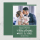 Celebrate your first Christmas married as Mr. and Mrs. with this cute holiday card featuring a customisable photo template and a lovely caption in white trendy fonts over a festive green background.