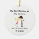 Celebrate this Christmas with a cute keepsake of the special occasion of marriage that occurred during the 2023 year. This thoughtful ornament will be cherished for years to come. It states "Our First Christmas as Mr. & Mrs." and has an image of a man holding a rose while kissing his lovely wife. The ornament can be personalised with the names of the newlyweds and date of marriage or year. It is on a white background. Perfect for newlyweds to cherish their wedding day with this beautiful keepsake.