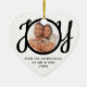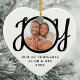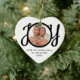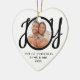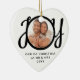 This keepsake, festive, heart-shaped First Christmas as Mr. & Mrs. photo ceramic ornament is decorated with the word "JOY" in stylish black script typography. Easily customisable.
