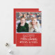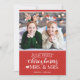 Celebrate your first Christmas as Mrs. and Mrs. with this cute holiday card featuring a customisable photo template and a lovely caption in white fonts over a festive red background.