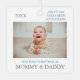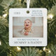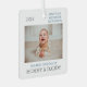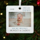 Our first Christmas as parents ornament featuring custom photo of baby and year. Photo template via Pixabay licensed under CC0 and must be replaced with your own photo