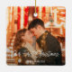 Our first Christmas one photo new relationship couple goals, holidays ornament. White script calligraphy handwritten text.