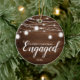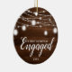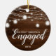 Our First Christmas Engaged. Holiday Custom Ceramic Ornament . This design features a rustic wood background with mason jar string lights.