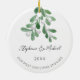 Celebrate your first Christmas as an engaged couple with this stylish ceramic ornament.