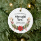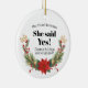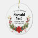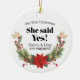 Celebrate your first Christmas as an engaged couple with this charming customisable ornament. Add your names or engagement date to make it uniquely yours, creating a beautiful keepsake that marks this special milestone. A perfect addition to your holiday decor, this ornament is a timeless reminder of your love and commitment, bringing joy to your tree year after year.