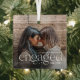 An elegant keepsake of your engagement year, this beautiful glass ornament displays a favourite photo with "our first Christmas engaged" overlaid in white lettering accented with stars. Personalise with your initials and the year.