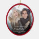 This Christmas tree ornament makes a wonderful keepsake gift for any newly engaged couple. The design offers a photo with a dark red border and overlay text for the couple's names and year.