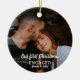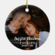 Our First Christmas Engaged Whimsical Script Photo Ceramic Ornament