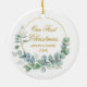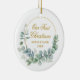 Our First Christmas Eucalyptus Leaves Gold Ceramic Ornament