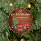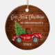 Modern Brush Script Our First Christmas as Grandparents Watercolor Vintage Red Truck with Christmas Tree Ornament - Rustic Country Wood Print -