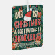 First Christmas in <add name of your street> Street in modern and simple bold serif typography on wreath background.