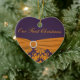 This purple and orange damask ornament with faux ribbon and jewels matches the wedding invitation shown below, and would make a nice keepsake of your special day, or a great gift for the newlyweds.