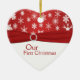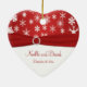 *** PLEASE NOTE that the ribbon and jewels are works of art and are not real. Remember your special day with this beautiful red and white snowflakes, heart-shaped ornament. You can customise the text to say whatever you wish. It also matches the Red and White Snowflakes wedding collection shown below.