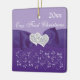 Remember your special day every Christmas with this beautiful ornament in lavender and ultra-violet purple with a PRINTED ON ribbon and bow and a pair of silver simulated glitter and printed on diamonds joined hearts brooch. Light purple flowers adorn the bottom on both sides and there is customisable text that you can personalise how you like. It is part of the wedding collection in the same design. ****PLEASE NOTE that this was designed for the square ornament. If you change it to be another shape, some elements may be cut off during printing. If you want a different shape, it is best to contact me at niteowlstudio@gmail.com to make up another shape for you.