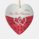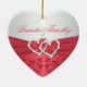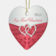 This coral pink and grey floral ceramice heart shaped ornament has faux coral ribbons and glittery jewelled joined hearts and matches the wedding invitation shown below. It would make a nice keepsake of your special day, or a great gift for the newlyweds.