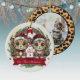 Celebrate the season with this playful "Our First Christmas", year and Let it Snow" ceramic ornament featuring a fun blend of leopard spots and cute cartoon graphics showcasing kittens with personalizable santa hats, along with a festive present and red kitty paws. Leopard Print frame place holder for your image. Customise by changing the text and/or names. Perfect for feline lovers, making it a great gift for any kitty enthusiast or animal print fan. Add a unique touch of wild holiday spirit cheer to your décor with this one-of-a-kind, purr-fect Christmas keepsake! 🐆🐈🐾⛄️